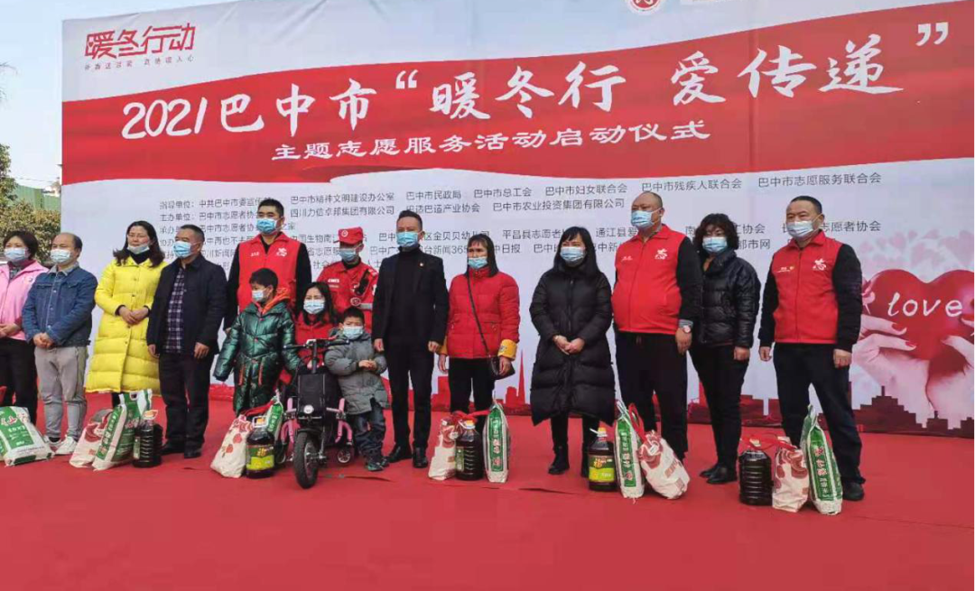 2月5日上午,由巴中市委宣傳部、巴中市精神文明建設辦公室、巴中市總工會(huì )等部門(mén)牽頭組織,巴中市志愿者協(xié)會(huì )主辦,中國生物南江血漿站等單位協(xié)辦的2021年巴中市“暖冬行,愛(ài)傳遞”主題志愿服務(wù)活動(dòng)啟動(dòng)儀式在巴人廣場(chǎng)舉行。巴中市委宣傳部副部長(cháng)、市文明辦主任、市志愿服務(wù)聯(lián)合會(huì )會(huì )長(cháng)畢偉出席活動(dòng)并講話(huà),倡導廣大人民群眾積極參與愛(ài)心志愿活動(dòng)。