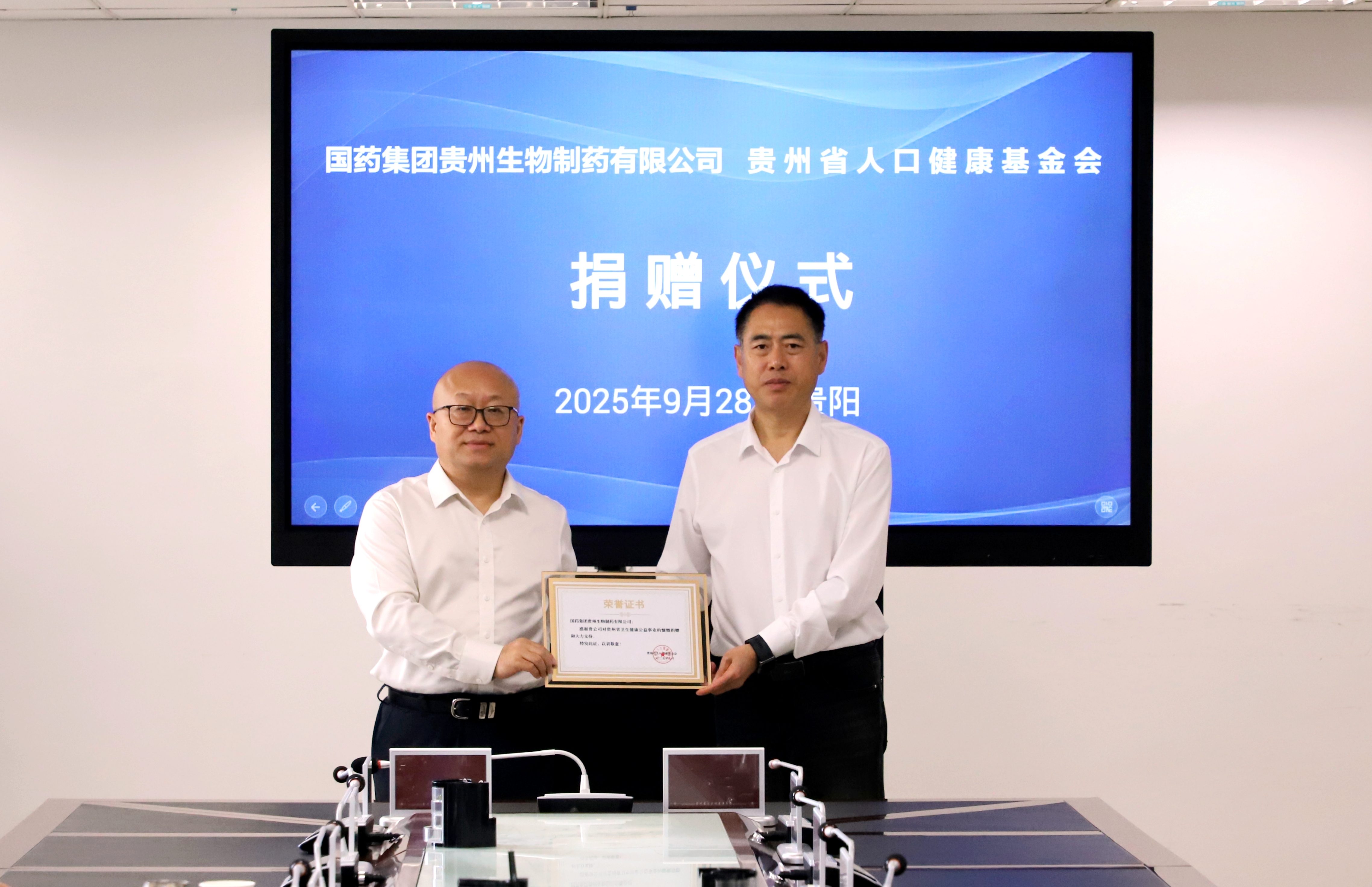 9月28日,北京天壇生物制品股份有限公司所屬?lài)幖瘓F貴州生物制藥有限公司(簡(jiǎn)稱(chēng)“國藥天壇貴州”)向貴州省人口健康基金會(huì )捐贈慈善資金儀式在貴陽(yáng)舉行。貴州省衛生健康委黨組書(shū)記譚諍,省衛生健康委黨組成員、省計生協(xié)專(zhuān)職副會(huì )長(cháng)石永忠,國藥天壇董事劉亞娜,國藥天壇副總經(jīng)理(主持經(jīng)營(yíng)工作)何彥林,國藥天壇貴州總經(jīng)理王連群及相關(guān)部門(mén)人員共同出席。儀式由省計生協(xié)秘書(shū)長(cháng)陳義龍主持。