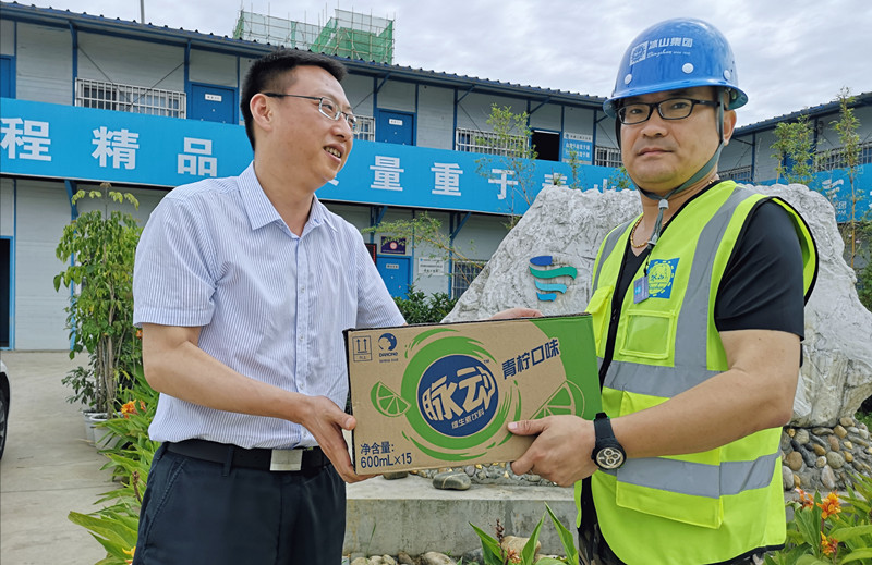 隨后,杜濤主席為項目參建人員代表發(fā)放了慰問(wèn)飲品,并為大家加油鼓勁。